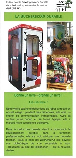 Ce projet de transformation des cabines téléphoniques hors service en bibliothèques d'un nouveau genre "permet aux élèves français et allemands, d'intégrer au sein de leur formation professionnelle la notion de recyclage et de conservation du patrimoine en détournant le mobilier urbain"...