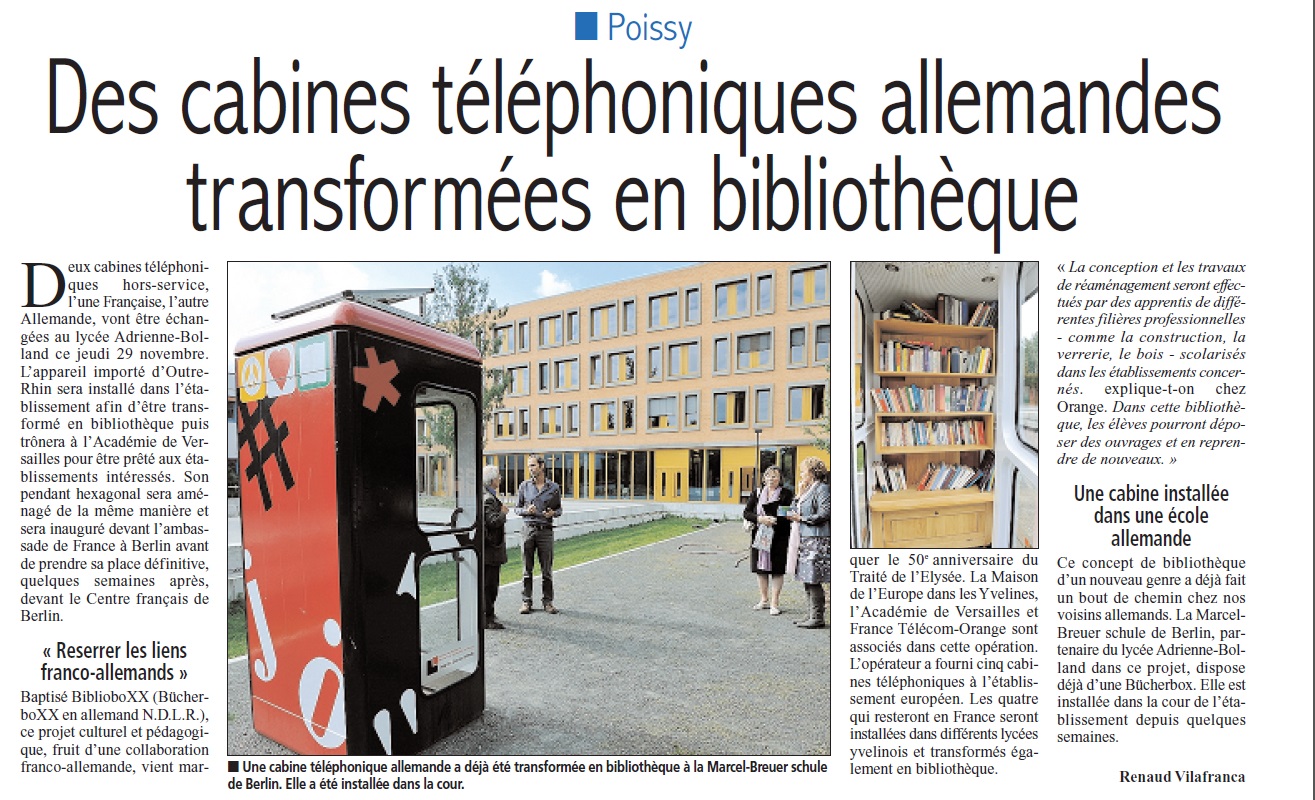 - article du Dauphiné Libéré (25-01-2016) à l'occasion de l'inauguration d'une nouvelle BiblioboXX à Grenoble le 21 janvier 2016 !