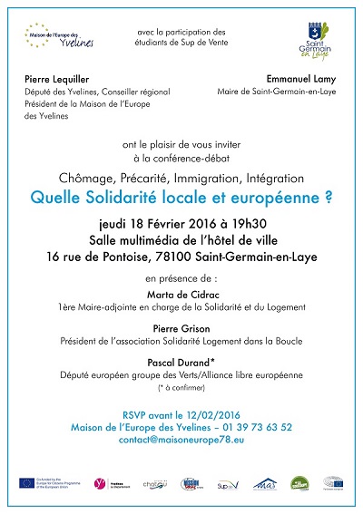 Conférence-débat le 18 février 2016 à Saint-Germain-en-Laye sur le 1er thème du projet "Quelle SOLIDARITE locale et européenne ?" Consultez le carton d'invitation et voir quelques photos de l'évènement et ci-dessous les étudiants SupdeVente en pleine action !