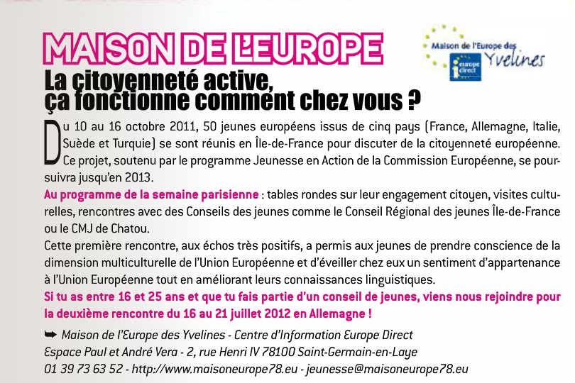 La Maison de l'Europe des Yvelines développe des projets en ce sens :