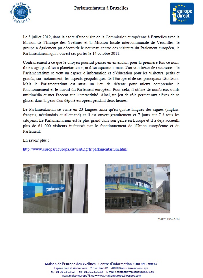 - visiter le Parlamentarium de Bruxelles (c'est gratuit!). Pour en savoir plus...