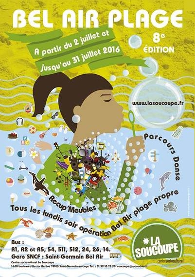 18 juillet, BEL AIR PLAGE à Saint-Germain-en-Laye du 2 au 31 juillet 2016. Nathan jeune volontaire de la Maison de l'Europe des Yvelines coanime les ateliers organisés par la Soucoupe, centre socio-culturel de Saint-Germain-en-Laye, dans le cadre de sa mission de Service civique.
