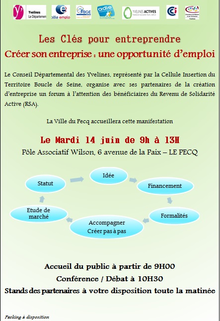 14 juin, de 9h à 13h, la Maison de l'Europe des Yvelines participe au Forum création d'entreprises, au Pecq sur Seine. Rejoignez l'équipe de la Maison de l'Europe qui tient un stand et rencontrez de nombreux interlocuteurs. Pour plus d'informations.