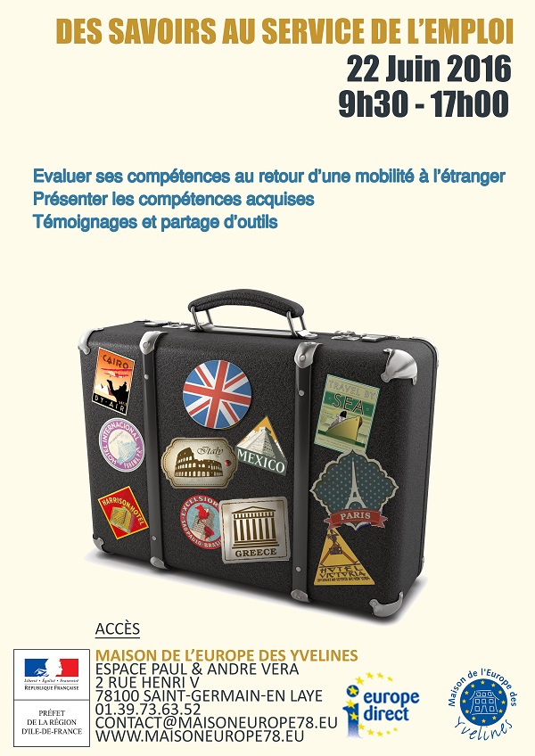 22 juin, de 9h30 à 17h, la Maison de l'Europe des Yvelines et son Centre d'Information Europe Direct organisent une journée de formation sur "la Valorisation des savoirs au service de l'emploi".