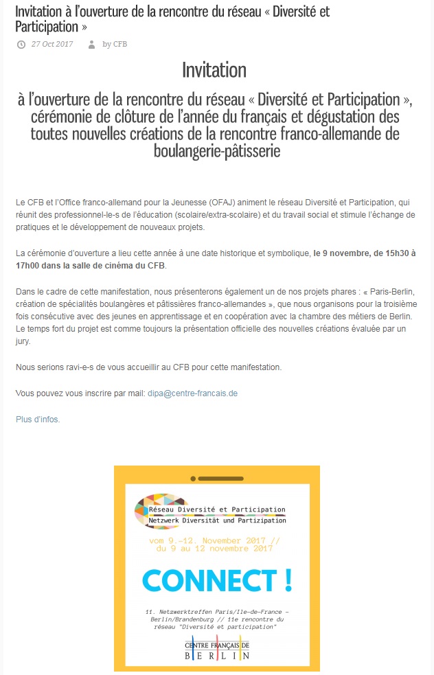 du 9 au 12 novembre, rencontre du réseau Diversité et Participation à Berlin (Allemagne) en présence de la Secrétaire générale de la Maison de l'Europe des Yvelines.