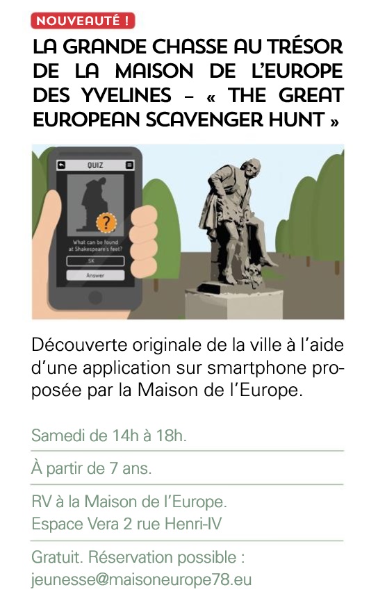 15 septembre, de 14h à 18h, dans le cadre des Journées du Patrimoine, la MdEY vous attend pour participer à une chasse au trésor.