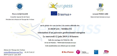 EUROPASS MOBILITE pour le programme Mouv'in Europe 8 le mercredi 12 juin 2019 à la Mairie de Saint-Germain-en-Laye.