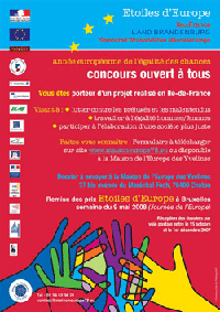 Les jeunes parlementaires d’Ile-de-France, rassemblés lors du week-end d’intégration du 15 et 16 décembre 2007 à l’INJEP (Institut National de la Jeunesse et de l’Education Populaire) à Marly le Roi, ont délibéré et sélectionné un projet par catégorie réalisé en Ile-de-France. Ces trois projets seront présentés au jury final le 30 janvier 2008 à Postdam (Allemagne) avec les trois projets polonais et les trois projets allemands retenus par les jurys de présélection des régions de la Mazovie (Pologne) et du Land de Brandenburg (Allemagne). Cette procédure est conforme au règlement du concours « Etoiles d’Europe » mis en ligne depuis le 15 octobre 2007 sur le site de la Maison de l’Europe des Yvelines (www.maisoneurope78.eu).